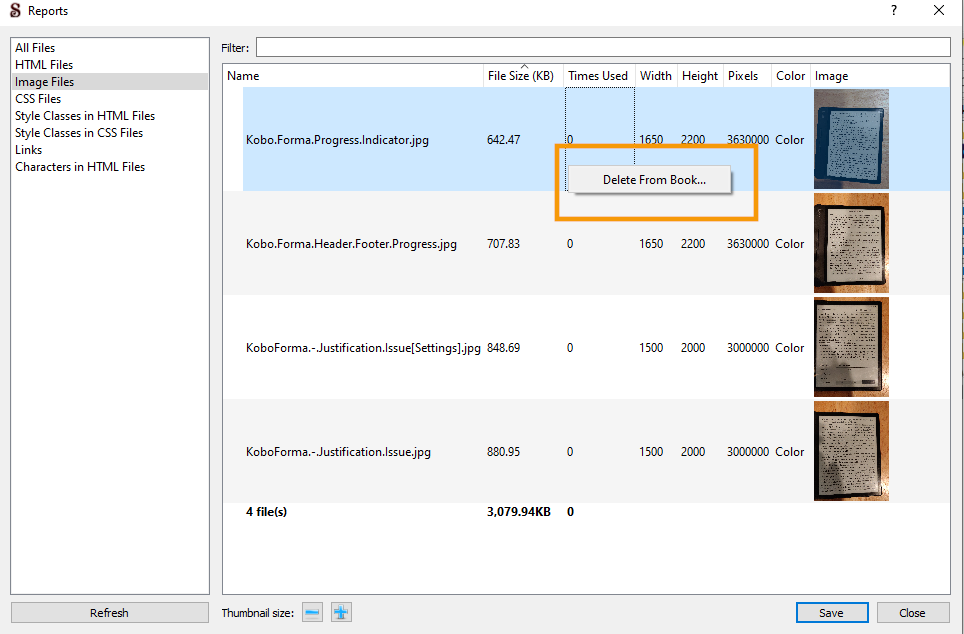<img alt="" src="../Images/image001.png" /> [...] <img alt="" src="../Images/image098.png" /> <img alt="" src="../Images/image099.png" /> 1. Go into Tools > Reports > Image Files. 2. Look through the images, any that are duplicate fleurons: Right-Click > Delete From Book: 3. Once you get rid of all the fleurons, then return back to the main Sigil window. Open the Images folder, Shift-Click to highlight all images, Right-Click > Rename: 4. Rename to something completely different. Like "TempImages001". Now, all your surviving images will be named "TempImages001", "TempImages002": Code: