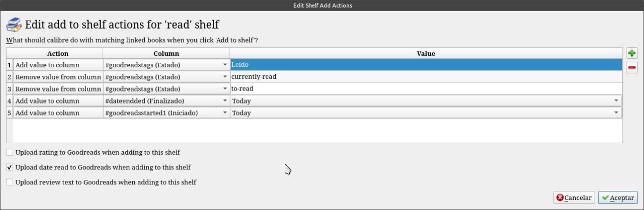 First you have to create custom columns. Once the creation of the customized columns is finished, we accept and Calibre will be restarted, so that these changes take effect, the columns will appear in the last positions, we must possess them, pressing the mouse over the column and move it to their places of choice .
