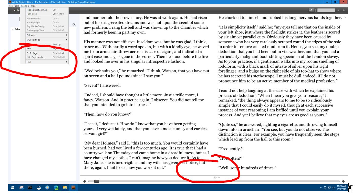 ADE shows page numbers from an ePub