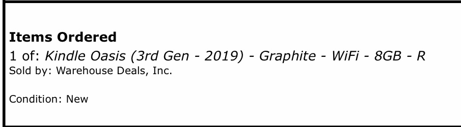 Unfortunately my BF goody is already having to be replaced. My Oasis 3 developed a thin one-pixel wide vertical line that extends completely across the screen from top to bottom. I didn’t drop or bump it and it has been in a case. Maybe it got treated roughly during shipping. But five days after receiving it it is scheduled for replacement. The invoice says I’m getting a new device, but the order shows an image of a plain brown box and has the dreaded letter "R" after the item name. I've got a bad feeling I’m getting a refurbished unit for a replacement of a brand new item. I know they sold out of the Oasis 3 and that might be all they have to send. I guess I’ll find out when it arrives on Monday.