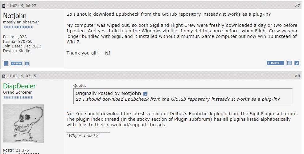 It is definitely not even in the top 100 of "toxic forums". If you go to the Sigil forum you will find the Plugins link in the very top of the list - see attachment. Then follow the directions DNSB provided. Cheers, Edit: For anyone who is curious, you can find the thread to which Notjohn refers here. He was not screamed at. He was actually helped quite readily in a very polite manner. Interestingly, he admits to his campaign to denigrate the Sigil forum whenever possible. FWIW Last edited by Turtle91; 12-12-2019 at 11:31 AM. |