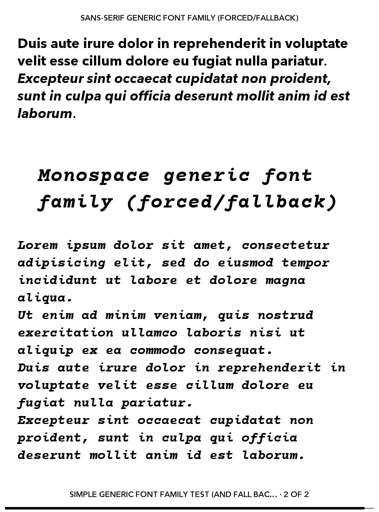 <p class="header" id="ue365c97c-d51a-42b7-be0b-faa3bc4bb251"><span class="generic-monospace">Monospace generic font family (forced/fallback)</span></p> Code: