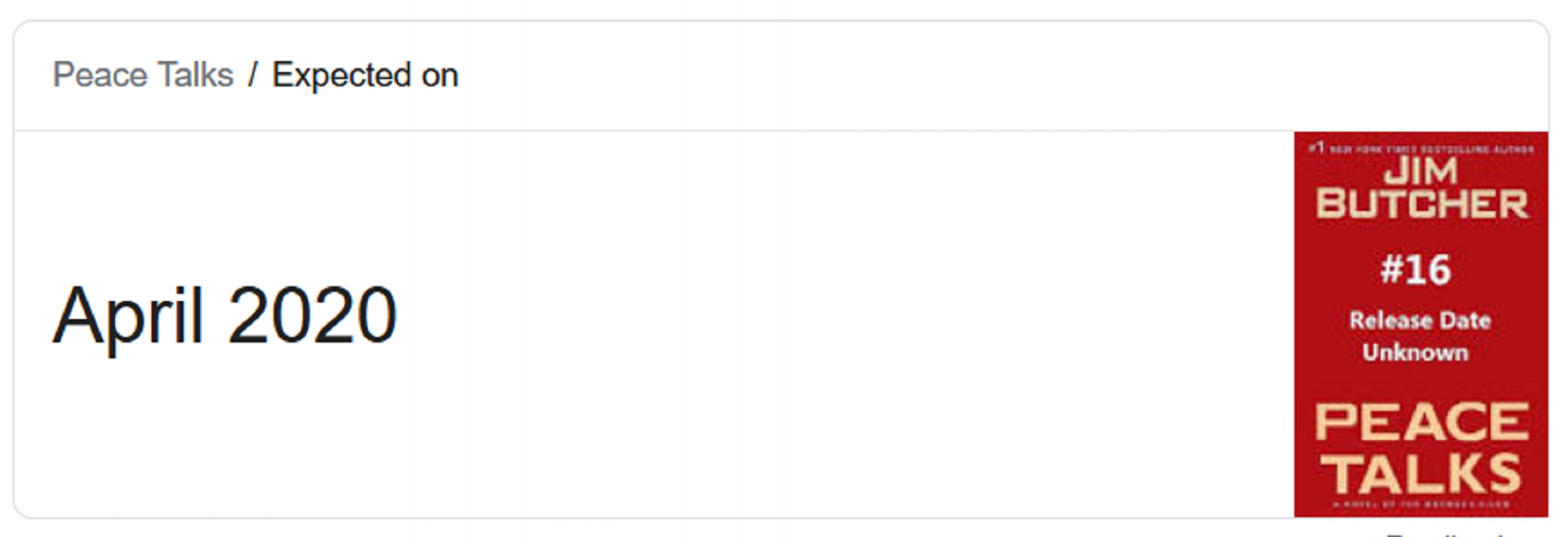 Hitch, I do get your argument, but also keep in mind that Butcher doesn't have the same background as a lot of writers who can keep churning out despite life. Many of those authors were journalists before they retired to writing. I think that makes a difference. Stephen King had a lot of support as well as the work ethic when he was injured. That's a lot why Pratchett could write despite illness (and the advantage of having the specific type of Alzheimer's he had). I'm not excusing it, but I do recognize that most writers maybe would not make that leap. |