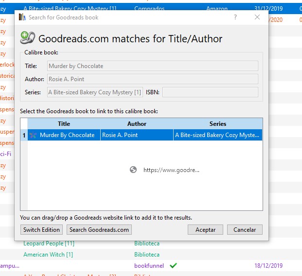 I have a problem now. Before, when I was searching for a goodreads match, if the book I wanted wasn't in the dialog box, I could drag the link and link it with the book. Now, when I drag the link, it is not included in the dialog box anymore, only a forbidden icon appears. I'm using calibre 4.7 for Windows 64 bits over Win 10.