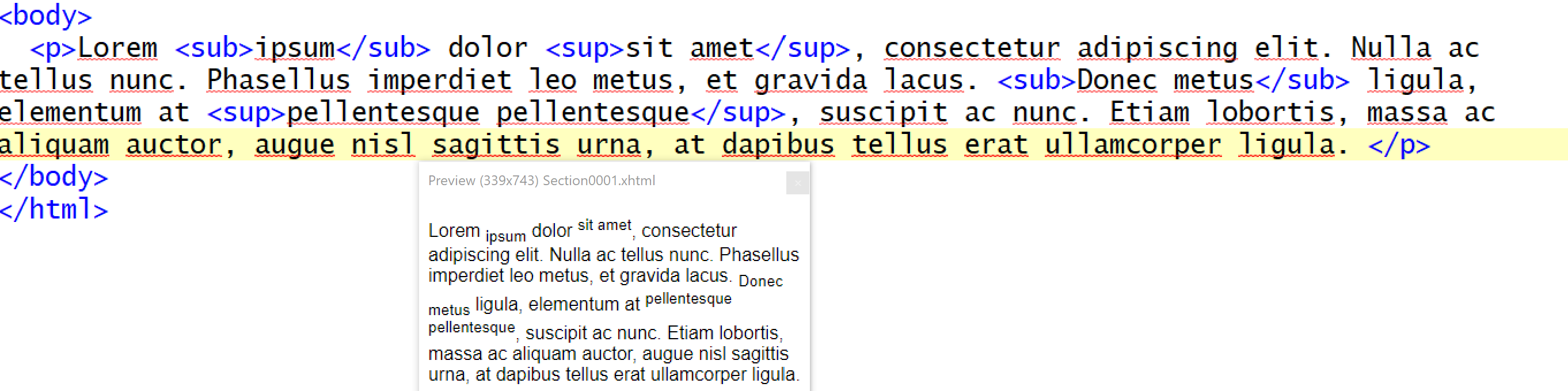 Sup and Sub tags render small characters without any other CSS entries on my part. Check your books CSS. they may have done a stupid (set absolute size instead of scalable) |