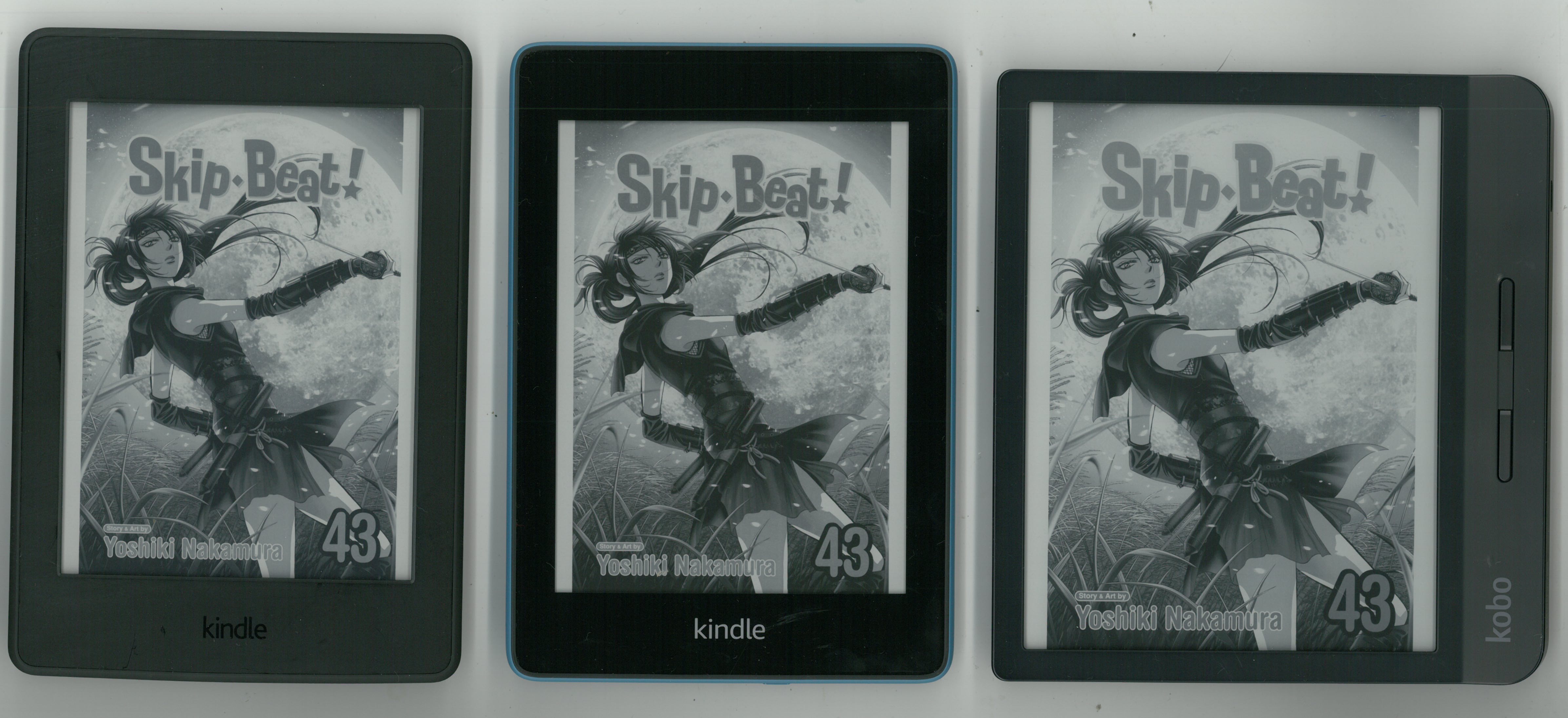 Tried an AZW3 file (and lossless extracted images as CBZ for Libra). Using native reader, brightness set to 0 (off for PW4 and Libra, very dim light on PW3). Scanner did a much better job than taking pics with my smartphone. Alas, no RAW mode I know of so this uses 300dpi, JPEG compression followed by JPEG lossless crop.I think the dim light on the PW3 made it look more washed out compared to the others. The PW3 has better contrast than either PW4 or Libra albeit in this particular example, the PW4 is really close. I find myself preferring the image processing techniques Amazon uses versus Kobo. Makes comics easier to read. From left-to-right: PW3, PW4, Libra H2O Last edited by ilovejedd; 02-04-2020 at 10:31 AM. |