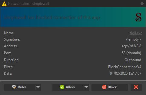 A simple, unassuming question would have been something along the lines of: "Looking through some logs and I saw Sigil hitting up a Google dns server on startup. What's that about?" I chose Google for my ping because it's always up and won't be affected by a few thousand extra pings. I chose port 53 because it's common enough that most people wouldn't be alarmed by a ping to well known service port. And at the end of the day, it's not even dns communication that's going on in the first place. The idea is to bail on the update-check as quick as possible so as not to delay the launch of Sigil. Last edited by DiapDealer; 02-04-2020 at 04:31 PM. |