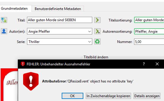 After install again the same thing happened. When i try to change something in the title of a book - means i click on the left side at a title and just want to delete a word or just a letter this will pop up |