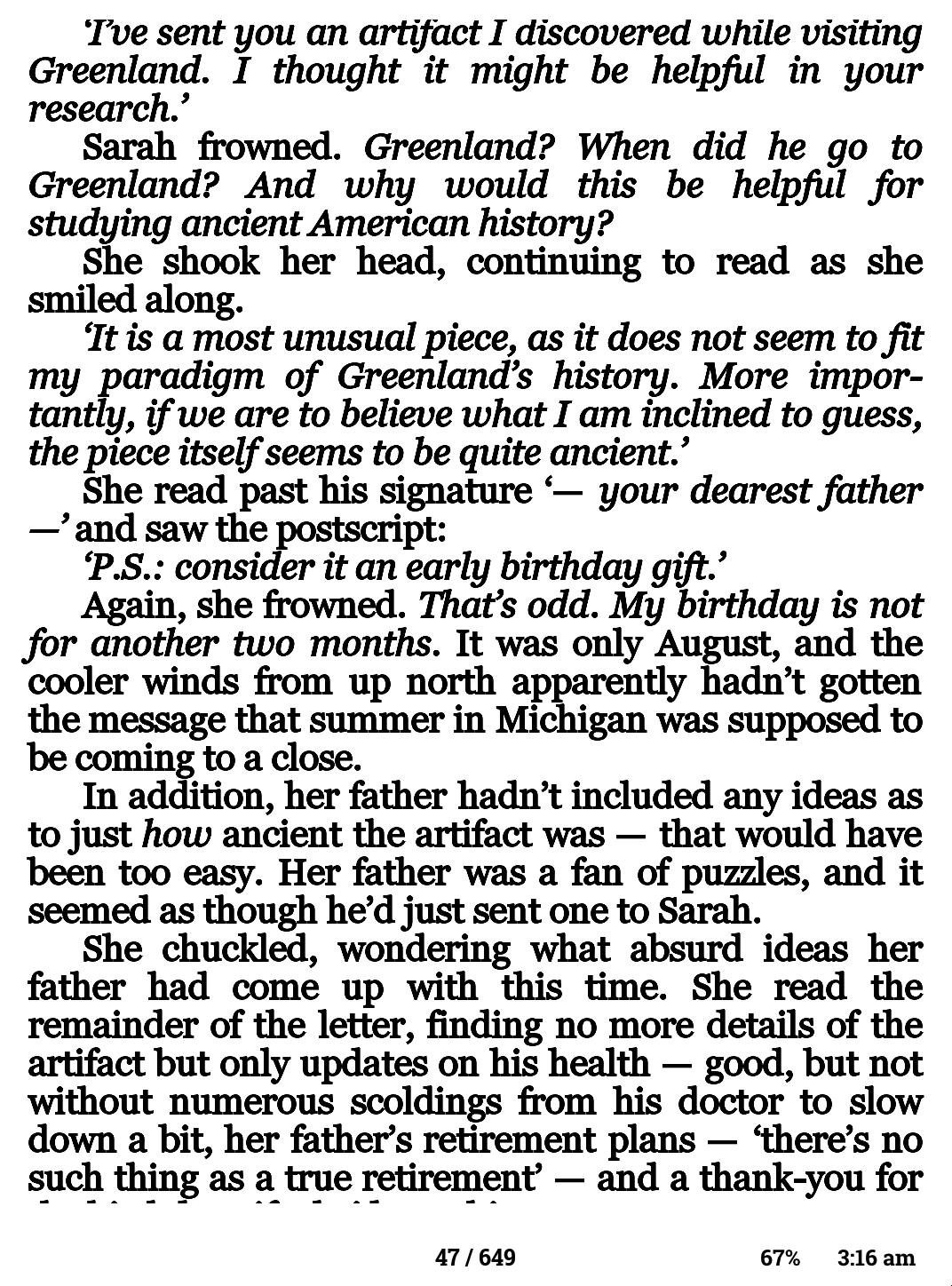 The first screenshot is my usual font that's side-loaded, Roboto Slab. The second is a system font, Georgia. I now think it has more to do with the line spacing that you set rather than font size. I do like less line spacing than usual. But no matter how small you make the line spacing in an epub, this never happens. |