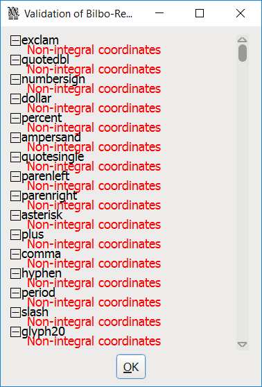 I was playing around with Font Forge not too long ago and would often get those errors in your first screen capture. My memory was that the fonts still appeared to work. I don't remember exactly what I was doing but it was probably converting between different font file formats. Last edited by hobnail; 03-13-2020 at 03:59 AM. |
