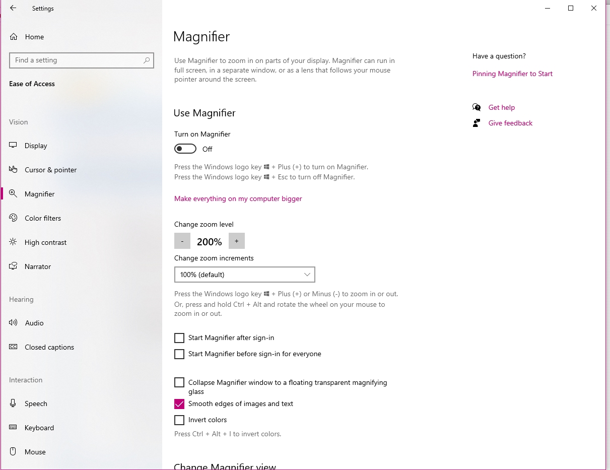 Also, Windows 10 has a built-in Magnifier that is excellent: WINDOWSKEY plus the PLUS key simultaneously, as described in the attachment.