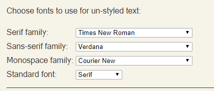 Some devices that is All or Not-a-thing used switch. Some allow some CSS control on top of the devices. Calibre's viewer allows your choice for DEFAULT generic font classes (image) lik serif... That are used if any other font called is unavailable. eg font-family: "Rickety Old Typewriter", monospaced; As you may have observed, many cleaning tools fail once a document has become corrupted by a partial removal of intertwined elements.