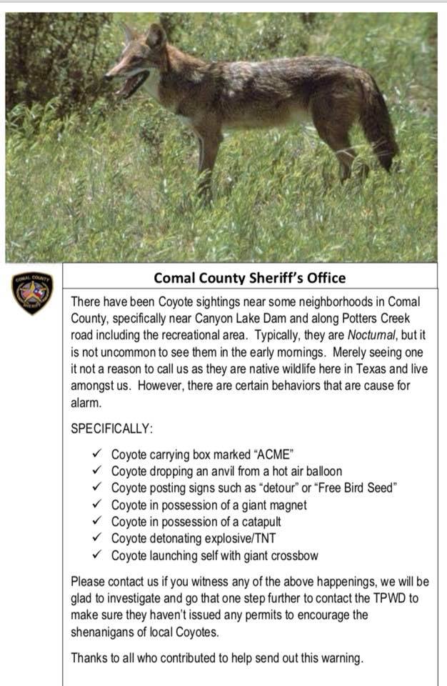 No reports of Wile E. behavior though.