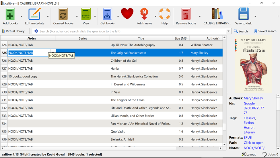 Also, I have this notes column in multiple libraries. In some libraries, I can do a quick access with a slow double-click on the data field. In others it will not work and only brings up the change window, why? Also, in some libraries, it will allow me to bulk update the custom column. In others, the custom field tab is blank and I can only update the data one book at a time, why? Thanks for any help.. I'm on Calibre 4.13 |