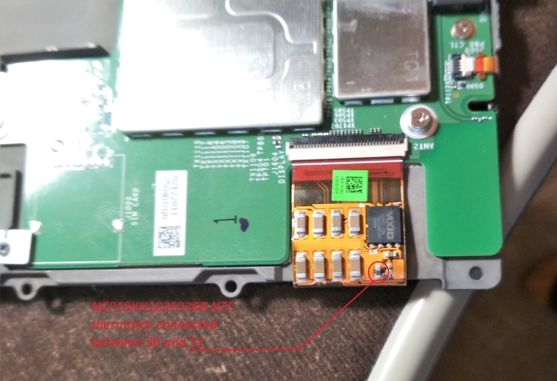 I had exactly the same problem as @Varu, i.e. battery error 22 after restart, and when the reader was sometimes able to start, the display worked very slowly. In the logs I found exactly the same errors regarding the lack of display temperature reading. In my case, the system set the default reading at -10 ° C (14 ° F), which I guess was the reason for the very slow operation of the display. I found on the internet that the ED060XD4 display has a built-in 10k thermistor on pins 30-31. When I looked at my display under the microscope, the cause of the problem appeared immediately - the temperature sensor was torn off. I don't know how it could happen because my reader was never taken apart. After repairing the connections, everything works as it should, no errors. |