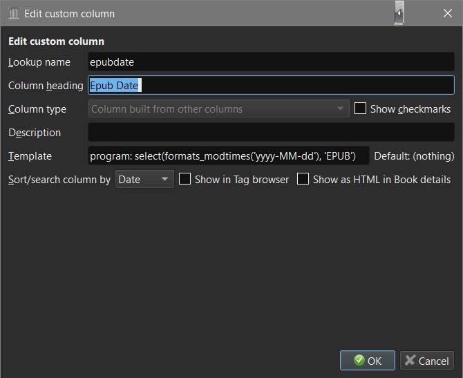 I'm half-inclined to regard that as a 'bug', I'll PM the Kovid and chaley and ask them to chime in. Meantime maybe this plugin can help ==>> Save Composite Custom Columns - it runs when the library is closed, but I'm not sure where it saves the composite (built from other columns) cells. You could try copying the column to a regular date column using Bulk metadata edit->Search and replace - but if you edit an epub in any way the template and copied columns will get out of whack. BR |