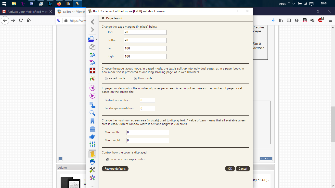 I just recently updated calibre from 3.* to 4.*. I opened the program and found the book I wished to read and opened the viewer. Much to my dismay, the update included some changes that required serious getting-used-to, and after about a month, I still am not completely comfortable. First, there are the margins of calibre's viewer. In 3.*, there were two separate (at least on my computer there were) margin styles available: one for full-screen view, and one for non-full-screen view. I didn't realize that when I set the margins in 4.* the whole viewer would respect that margin setting and it makes for terrible viewing in non-full-screen mode. How do I change this? Second, after entering full-screen mode and reading for a while, I hit "escape" on the keyboard and nothing happened. I discovered that common functionality of hitting "escape" to exit out of full-screen from any other application I know of, videos or otherwise, has been removed. Instead, I have to hit a general button to open both views. I changed the keybinding to escape, thinking that it would just close out, but counterintuitive, the design of the viewer allows it to operate as both an enter and exit full-screen function. I grant that is what the keybinding field states, but there was no exit-full-screen-only field. How can I solve this to allow F11 or some other key to enter and exit full-screen mode, while "ESC" escape key allows only exiting full-screen mode? Third, the scrolling functionality is different in 4.* viewer, than in 3.* viewer, and I dislike it something fierce! Is it at all possible to change those settings back to that scrolling feature? Thank you! |
