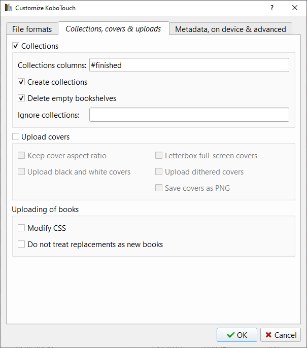 I've included some screenshots of my setup following PeterT's suggestions. The finished column is the only collection I use on my Kobo's as I find search works for my purposes without having to browse through page after page of collections. |