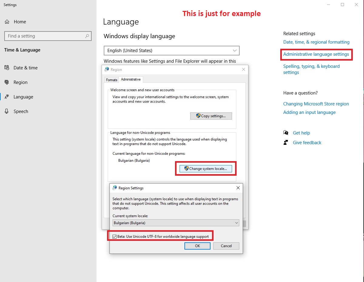 I've included the "Beta: Use Unicode UTF-8 for wordwide language support" option in "Language for non-Unicode programs" and everything works now. First, I tried to choose English in "Regional settings" in "Non-Unicode programs", but that didn't work. In general, if the Windows Display language is EN, there seems to be no problem. However, I wonder why the problem occurred with the new version, while with version 3.1.5 there were no problems. Thanks to all of you who engaged in my problem. I also hope my decision would help those of you who are dealing with the same issue. |