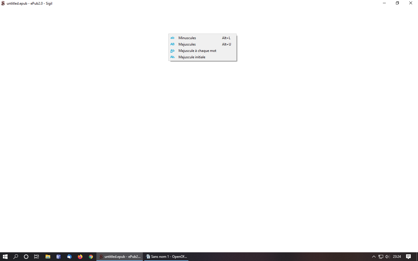 Thank you for your answers. I don't have a dark theme. I tried the https://community.atlassian.com/t5/H...w/qaq-p/277535 solution but it didn't work. I search on internet "QT app open to white screen", I found things but the solutions were not understandable for me. Then I tried to install earlier versions of Sigil. I started with Sigil-0.8.0-Windows-x64 and it was working perfectly. All versions are working up to Sigil-0.9.16-Windows-x64. From Sigil-0.9.17-Windows-x64 up to Sigil-1.2.0-Windows-x64, all versions open with a white window.