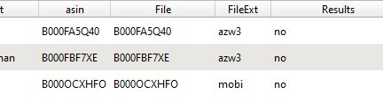 I have the file name and asin. I have no clue how to do result. but i do have one other problem. The file names all have _ebok on the end. This will result in all of the compares resulting in no. Any idea for a work around?