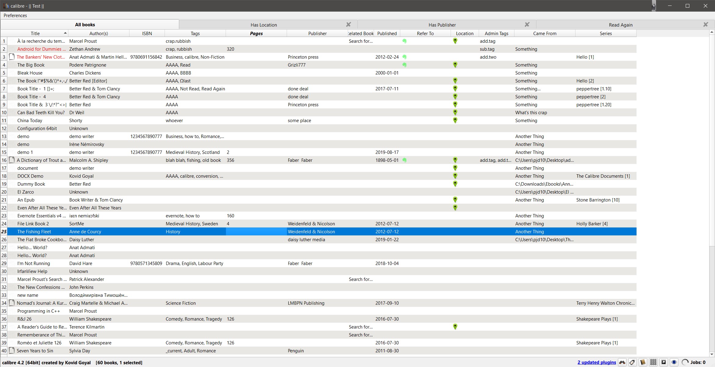 I need to keep track of which books cover certain topics, which ones are needed for each project, which ones I've sideloaded or plan to, which ones have been pre-processed for my Kindle since it can't read most newer pdfs, etc. Your needs may differ. I do have a couple user interface issues-- If I use Mac system default view, then there's no contrast between the selected cell and others in the same row. If I use Calibre's own view, then there's no contrast between the light gray scrollers, the light gray lines around them, and the light gray scrollbar. And either way, certain plugins like fanficfare animate when they complete actions. I have neurological issues and trouble with animation. --But the ability to create my own columns, my own settings for tools like Kindle Collections, and so on is incredibly useful. |