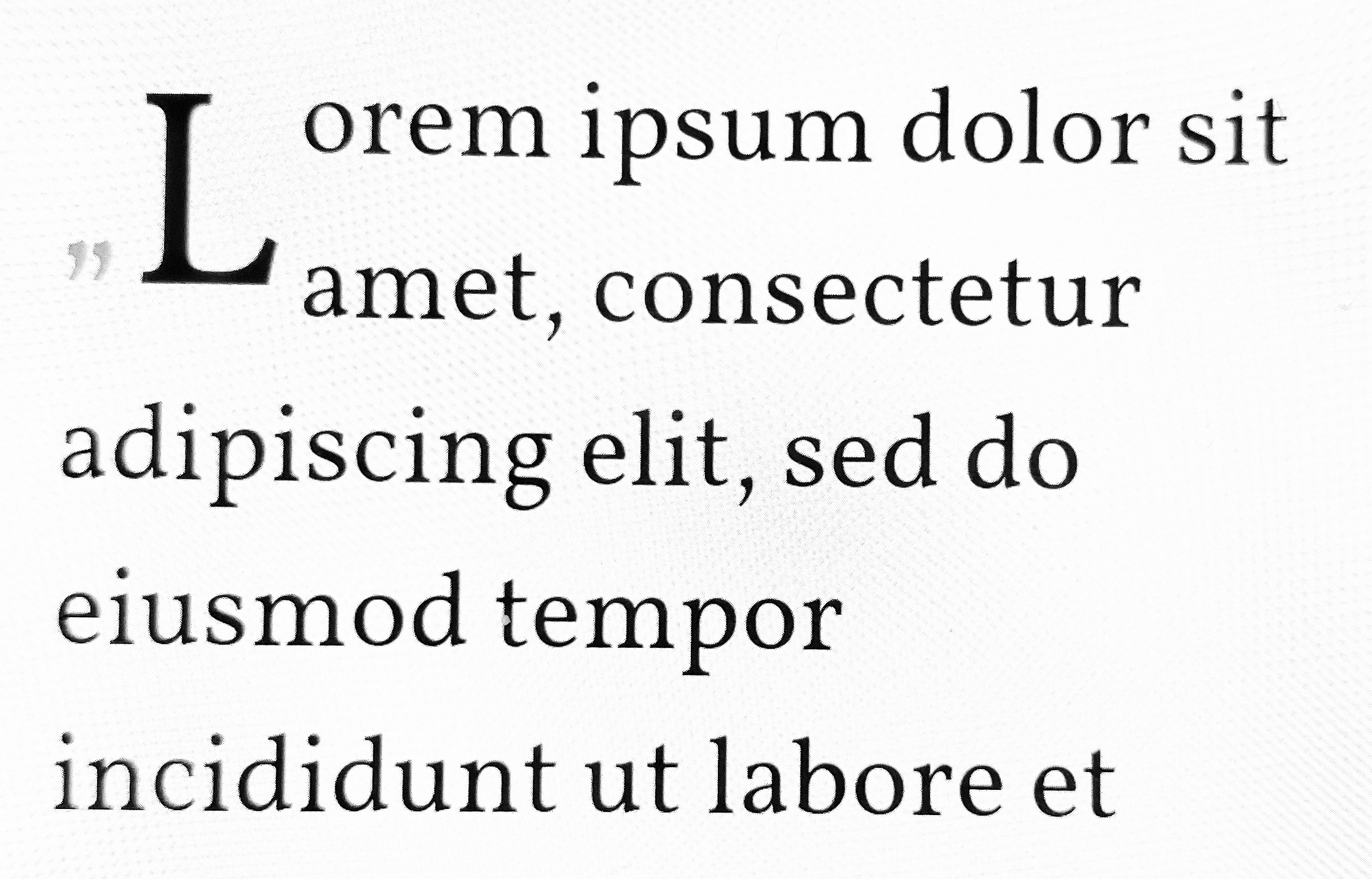 i.e. <span class="unical3">“S</span> for a starter and then do a style for the “ to position/size it to your tastes. You will need to include the " inside the unical3 span as the float:left; will move the quote mark to allow the letter to float left. <span class="unical3><span class="quoteunical">“</span>S</span> where the quoteunical style might make the “ a bit smaller, play with the vertical alignment and possibly a grey rather than black. Another option with quite a bit of history behind it is simply to omit the opening quote when using a drop cap. @hobnail: I'm tempted to say that he is not using an uncial font. Perhaps unical is the Danish equivalent of dropcap? |