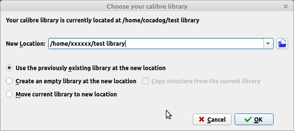 Use the previously existing library at the new location is checked. bernie |
