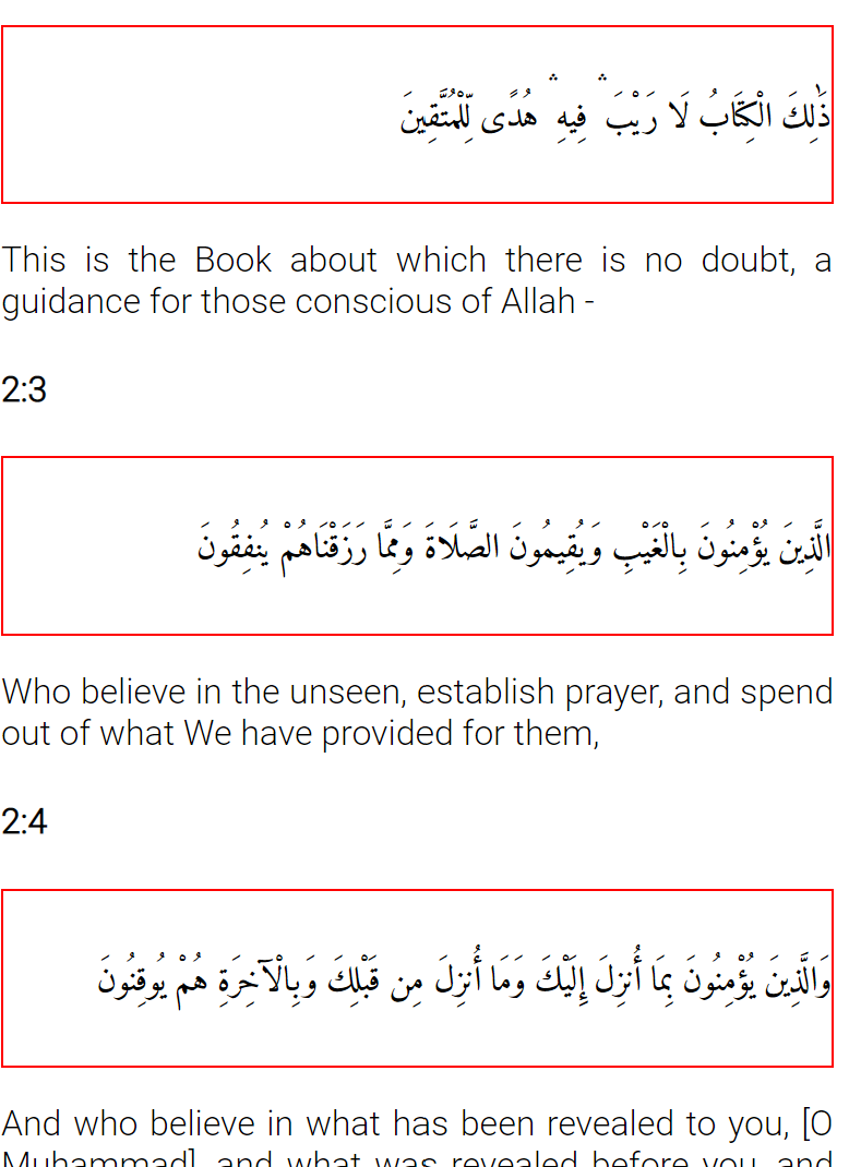 <?xml version="1.0" encoding="utf-8"?> <!DOCTYPE html> <html xmlns="http://www.w3.org/1999/xhtml" xmlns:epub="http://www.idpf.org/2007/ops"> <head> <title></title> <link href="../Styles/Style0001.css" type="text/css" rel="stylesheet"/> </head> <body> <h1>Blah blah blah blah blah blah<br/> سورة البقرة </h1> <h4 id="sigil_toc_id_1">2:1</h4> <p class="rtltext"> الم </p> <p>Blah blah blah blah blah blah blah blah blah blah blah blah blah blah blah blah blah blah blah blah blah blah blah blah blah blah blah blah.</p> <h4 id="sigil_toc_id_2">2:2</h4> <p class="rtltext"> ذَٰلِكَ الْكِتَابُ لَا رَيْبَ ۛ فِيهِ ۛ هُدًى لِّلْمُتَّقِينَ </p> <p>Blah blah blah blah blah blah blah blah blah blah blah blah blah blah blah blah blah blah blah blah blah blah blah blah blah blah blah blah.</p> <h4 id="sigil_toc_id_3">2:3</h4> <p class="rtltext"> الَّذِينَ يُؤْمِنُونَ بِالْغَيْبِ وَيُقِيمُونَ الصَّلَاةَ وَمِمَّا رَزَقْنَاهُمْ يُنفِقُونَ </p> <p>Blah blah blah blah blah blah blah blah blah blah blah blah blah blah blah blah blah blah blah blah blah blah blah blah blah blah blah blah.</p> <h4 id="sigil_toc_id_4">2:4</h4> <p class="rtltext"> وَالَّذِينَ يُؤْمِنُونَ بِمَا أُنزِلَ إِلَيْكَ وَمَا أُنزِلَ مِن قَبْلِكَ وَبِالْآخِرَةِ هُمْ يُوقِنُونَ </p> <p>Blah blah blah blah blah blah blah blah blah blah blah blah blah blah blah blah blah blah blah blah blah blah blah blah blah blah blah blah.</p> <h4 id="sigil_toc_id_5">2:5</h4> <p class="rtltext"> أُولَٰئِكَ عَلَىٰ هُدًى مِّن رَّبِّهِمْ ۖ وَأُولَٰئِكَ هُمُ الْمُفْلِحُونَ </p> <p>Blah blah blah blah blah blah blah blah blah blah blah blah blah blah blah blah blah blah blah blah blah blah blah blah blah blah blah blah.</p> <h4 id="sigil_toc_id_6">2:6</h4> <p class="rtltext"> إِنَّ الَّذِينَ كَفَرُوا سَوَاءٌ عَلَيْهِمْ أَأَنذَرْتَهُمْ أَمْ لَمْ تُنذِرْهُمْ لَا يُؤْمِنُونَ </p> <p>Blah blah blah blah blah blah blah blah blah blah blah blah blah blah blah blah blah blah blah blah blah blah blah blah blah blah blah blah.</p> <h4 id="sigil_toc_id_7">2:7</h4> <p class="rtltext"> خَتَمَ اللَّهُ عَلَىٰ قُلُوبِهِمْ وَعَلَىٰ سَمْعِهِمْ ۖ وَعَلَىٰ أَبْصَارِهِمْ غِشَاوَةٌ ۖ وَلَهُمْ عَذَابٌ عَظِيمٌ </p> <p>Blah blah blah blah blah blah blah blah blah blah blah blah blah blah blah blah blah blah blah blah blah blah blah blah blah blah blah blah.</p> <h4 id="sigil_toc_id_8">2:8</h4> <p class="rtltext"> وَمِنَ النَّاسِ مَن يَقُولُ آمَنَّا بِاللَّهِ وَبِالْيَوْمِ الْآخِرِ وَمَا هُم بِمُؤْمِنِينَ </p> <p>Blah blah blah blah blah blah blah blah blah blah blah blah blah blah blah blah blah blah blah blah blah blah blah blah blah blah blah blah.</p> </body> </html> Last edited by d351r3d; 06-03-2020 at 10:03 AM. |