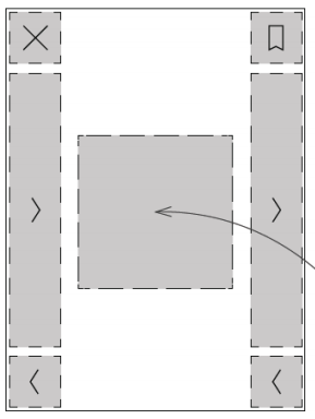 I've been trying different region layouts. I first tried the layout with the page forward being wide and left, and menu being a small square in the center (second option), but I kept getting the menu when I wanted to turn pages,a nd still had to reach too far over when using my left hand -- further than I had to on my Kindle. Now I'm playing with the fourth option with the entire bottom 40% or so being forward, but then it feels like when holding it right-handed I have to hold it lower than I normally would.