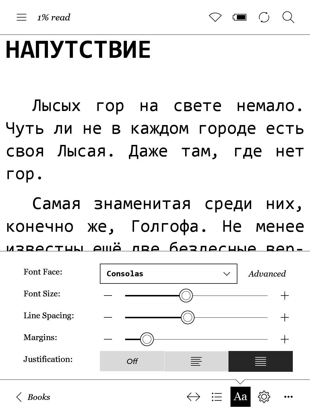 0. Patch firmware for always hyphens for Kepub. 1. Apply path for hyphens, posted in this tread above. 2. Get book in FB2 3. Convert to EPUB, by fb2mobi: https://github.com/rupor-github/fb2mobi * in settings switch off hyphens; 4. Convert to KEPUB by kepubify: https://github.com/geek1011/kepubify Page view you find in attachment. Last edited by Vetchy; 12-22-2017 at 09:47 AM. |