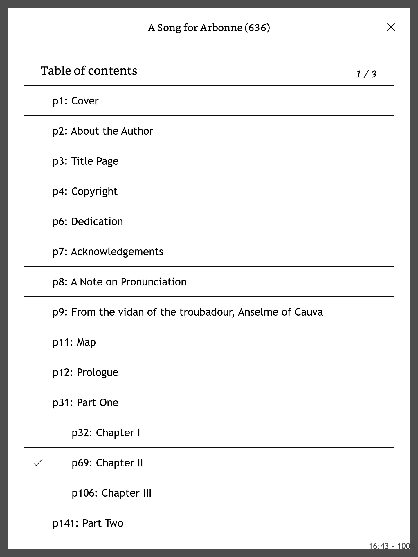 I know such a feature is technically feasible because I like messin' around and cobbled something together last year using my own copy of KoboTouchExtended calibre driver to update the TOC on-the-fly during send-to-device. For my own experiments, when deciding what page number each chapter started at, I used the ADE page numbers for epubs and for kepubs the old Kobo concept of (x words = 1 page), where I get to choose x. Given the sound & fury unleashed every time the question of the 'right way to do page numbers' comes up, it's not surprising no-one has come up with a communal offering. It's all so much easier when your user base of one always agrees with you. ![]() Here's a couple of screenshots of a typical kepub as proof of concept. Start "page" of chapter shown in TOC and book heading. Total "pages" (using x words/page) shown in brackets in book footer. Even I'm not sure how worthwhile this is but it was a fun project which kept me amused whilst the aforementioned arguments were raging. Last edited by jackie_w; 06-14-2020 at 01:18 PM. |