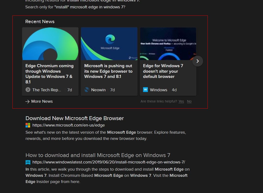 I've been assuming the things at the top were ads, I just told DDG to get rid of the images ![]() IMO pushing non security items to EOL'd versions is a moral breach of contract, if I was still running 7 I'd turn Windows Update off and use a 3rd party AV or none. If it was the EdgeHTML based version - the one the handled epubs rather nicely - It might be worth having Edge on Win 7, otherwise why would anyone want the Chromium Edge, might as well have Chrome. BR |