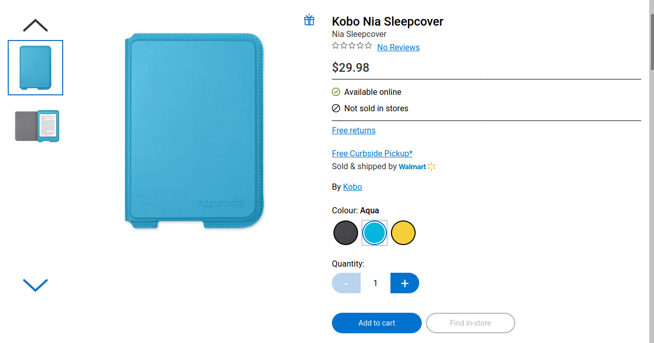 Kobo Nia sleepcovers now available for purchase on Walmart Canada's site...