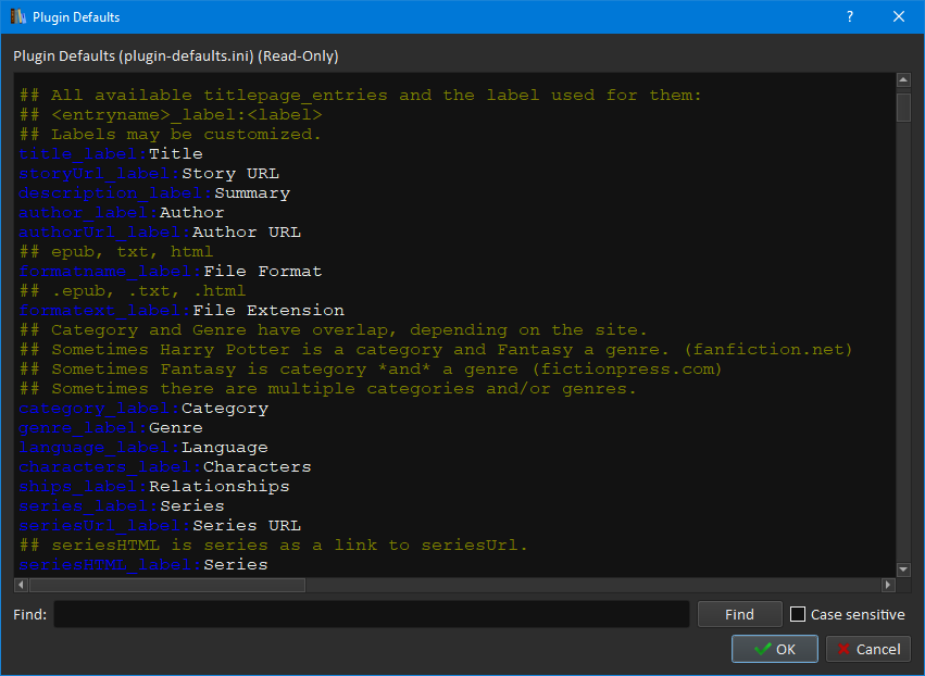 Also something I found while trying to puzzle that out myself: The crossover crosscategory thing seems to have stopped working on AO3; I downloaded several multifandom fics to check and it doesn't add crossover to any of them. It does still work on FFNet though. I think it was working before so I'm not sure if AO3 changed something or if I managed to break it myself. Here's my ini file in the more likely event of the latter: Spoiler: