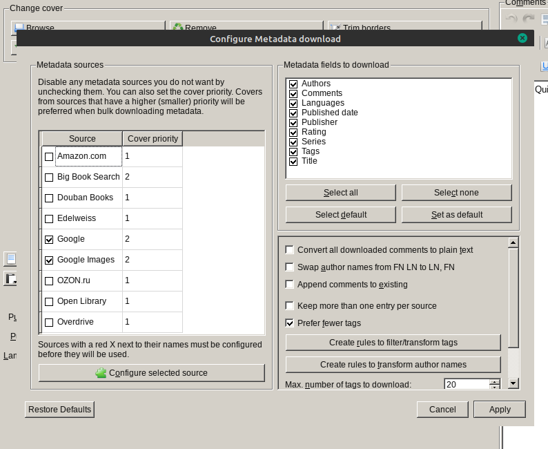 That image says you are using Search by Image That must be recently new from Google ??? (not a Calibre fixable issue )Just ignore that and drop the image into Calibre (MDE or details pane) as usual. That still works NOT running either at full screen might help ( I run 2 Monitors, so I drag between screens and never deal with some single screen issues others see )My (PI as shipped) Search uses the TITLE + Author to search Google for Images (to be honest, I have never used that 'look like this' image mode at Google note: My menu has been customized (using the choice at the bottom) to limit all the choices. |