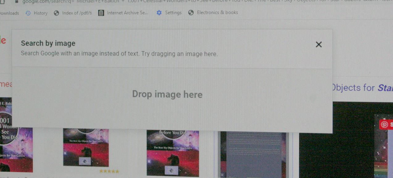 That image says you are using Search by Image That must be recently new from Google ??? (not a Calibre fixable issue )Just ignore that and drop the image into Calibre (MDE or details pane) as usual. That still works NOT running either at full screen might help ( I run 2 Monitors, so I drag between screens and never deal with some single screen issues others see )My (PI as shipped) Search uses the TITLE + Author to search Google for Images (to be honest, I have never used that 'look like this' image mode at Google note: My menu has been customized (using the choice at the bottom) to limit all the choices. |
