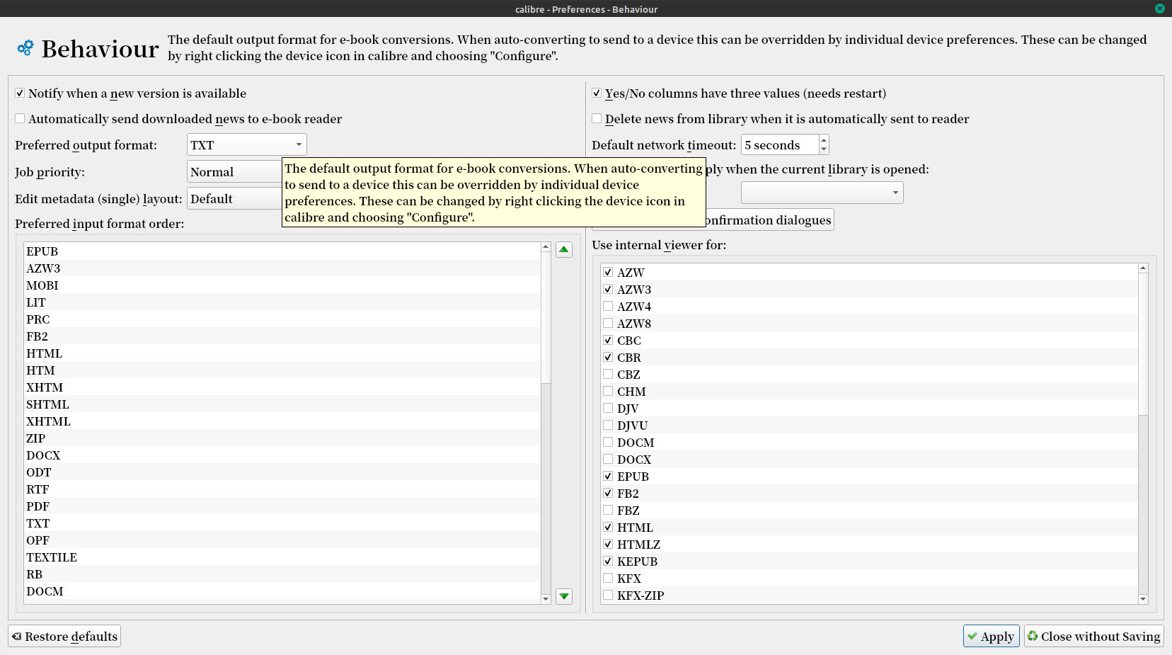 Figuring out the Logic of how some things work/behave is what gets to my curious spot (there must be some Cat in my family tree )Send to device has known rules (settings are in the driver), while save to disk is just a simple file system operation (no driver). I do a lot of 'Wow" when I see what Calibre does. Kovid has done some fantastic work. I know folk complain, but once you get so far down the development road, it is near next to impossible to make a change of direction because of a design decision waaaay back. Version Compatibility (DB) seems to be the Top of Kovids list |