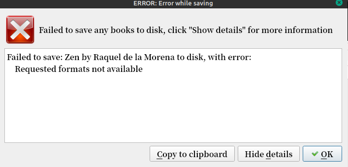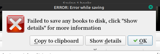 I have tried converting the book to txt and then saving to disk and it worked.