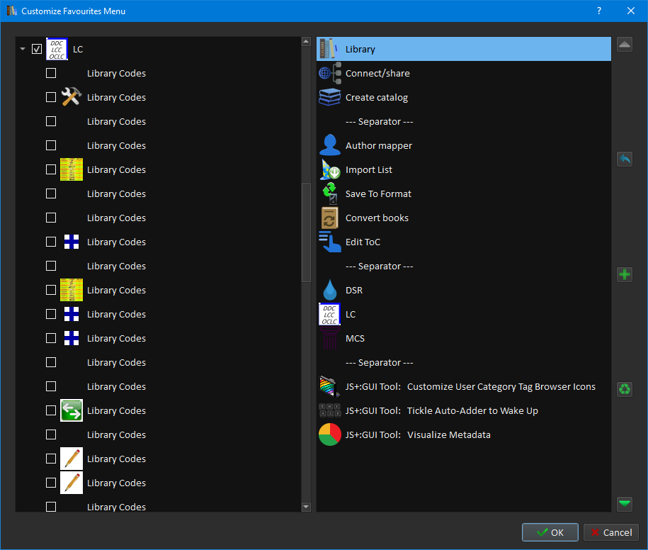 Other plugins (including both Job Spy and MCS) do have their submenus appear correctly, so I'm not sure why Library Codes doesn't. Thankfully I can rename the entries but they're a little bit hard to tell apart when adding them in the first place and it seemed weird enough to report as possible bug. ![]() EDIT: Ok more odd behaviour: I added "Convert ISBN-10..." to the Favourites menu and renamed it. Its icon vanished from the menu and it doesn't actually activate. It's not a big issue because I can use it from the LC menu anyways but it's still strange considering the JS entries work. Last edited by ownedbycats; 07-16-2020 at 07:56 PM. |