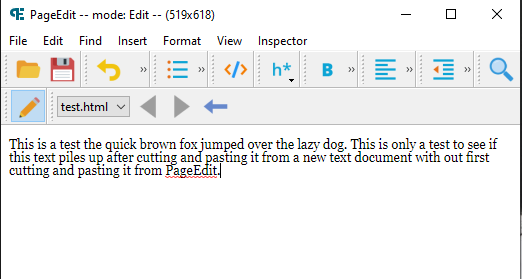 the only time it didn't pile up was, as I said I pasted it first into Windows Notepad, which strips out all formatting. With using OO I have limited my programs down to three OO, PageEdit and Sigil. If I use LO I would need to put Notepad in between LO and PageEdit.