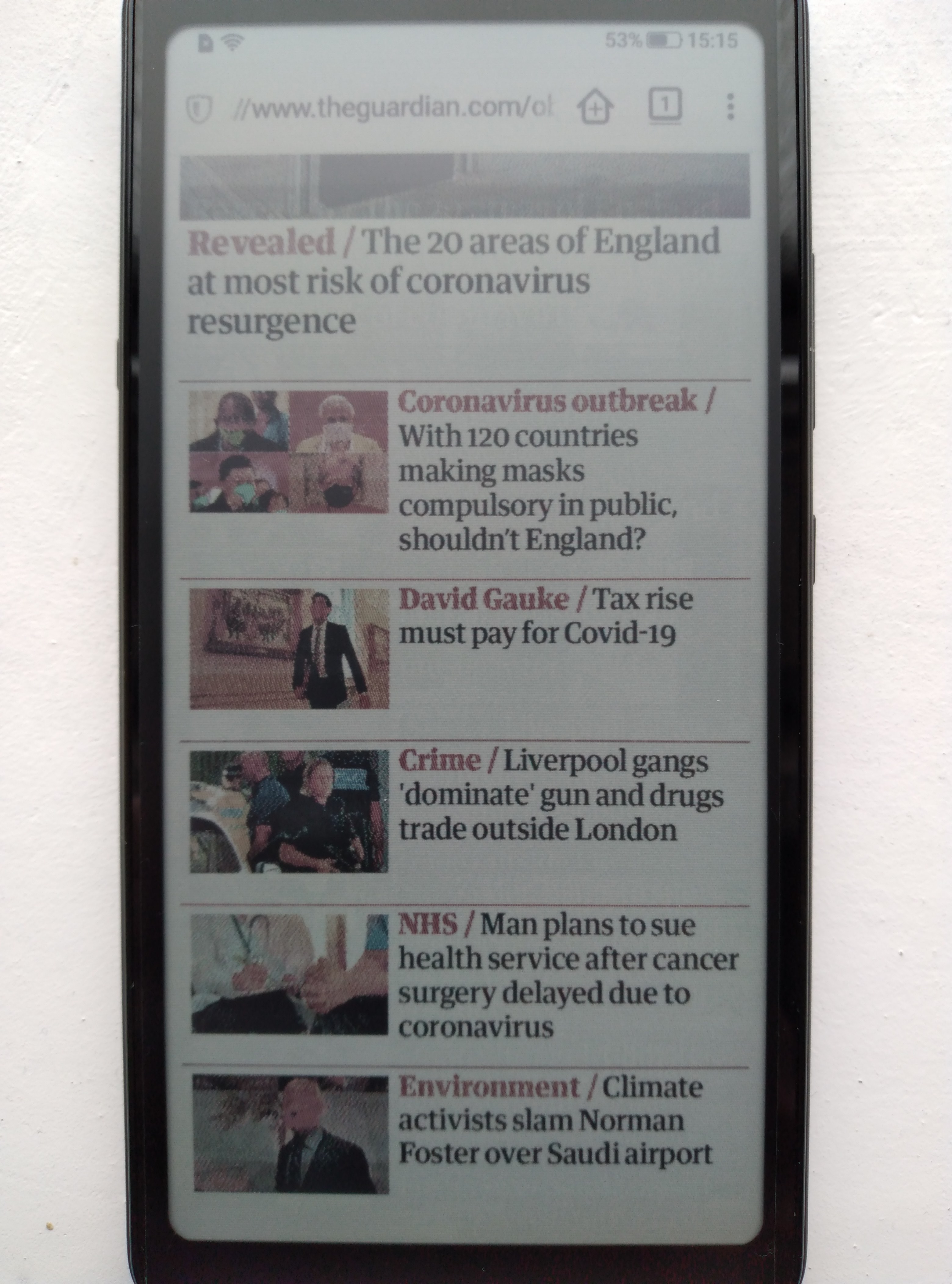 I just wondered because I am a patient volunteer in a GP surgery and one of my jobs is to give feedback on how systems are working, but I don't have a smartphone because I don't get on with LED light. It would be great if I could root an e-ink phone so I could start working with the new systems. |