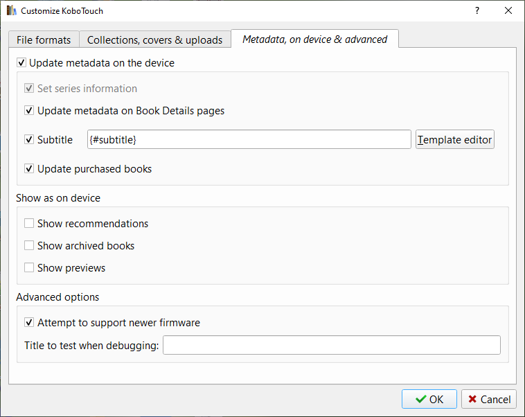 The most common reason for this is a factory reset. But, deleting the file "driveinfo.calibre" from the root directory of the device will also do it. The id for the matching comes from that file. If the file doesn't exist, calibre creates it. The id is randomly generated, so it will change. As I said in the post I linked, if you only have the one Kobo ereader, the simplest thing to do is to selected "*Any Device" in the configuration for the plugin. If you do have multiple devices, and want to have different configurations for them, you need to update the known devices in Devices tab. And then select it in the profile. I will have to revisit how this is done in the plugin. It probably should use the serial number, but, there are some issues with that. |