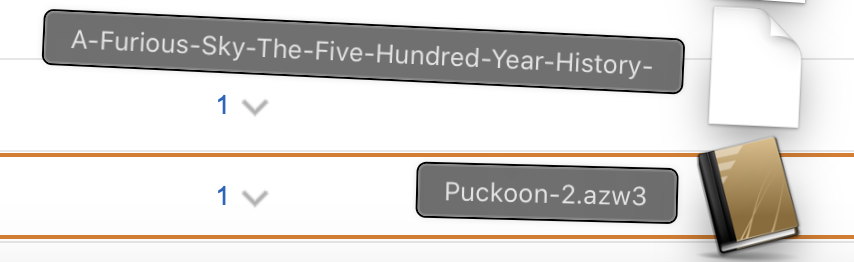 Good question, no I am not. However to test that possibility, I downloaded another book, Puckoon, from my Amazon account using the same method. It shows up as expected with a .azw3 extension. So my issue is in the download to my iMac from the Manage Content page in my Amazon account.for these two specific books. Note I can open them on my iPhone with the Kindle Reader app. This brings me back to my original question. Has Amazon changed something in the file format? or DRM? Hopefully not for their sake as my solution would be to purchase from the Kobo Store instead. Thanks, Joe PS I am reading A Furious Sky on my iPad. Good & timely book on the history of hurricanes in the USA. Highly recommended, maybe someone else will purchase and test the download.... |