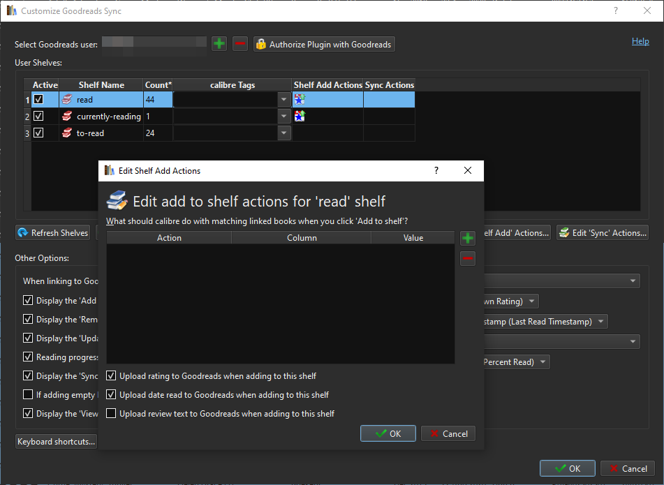 Because I'm lazy AF, what I'd really like to have happen now is if Calibre detects a change in a column I have that stored the books read %age, then it should automatically update the Goodreads Reading Progress for that book. Any thoughts on how I might get this to happen?