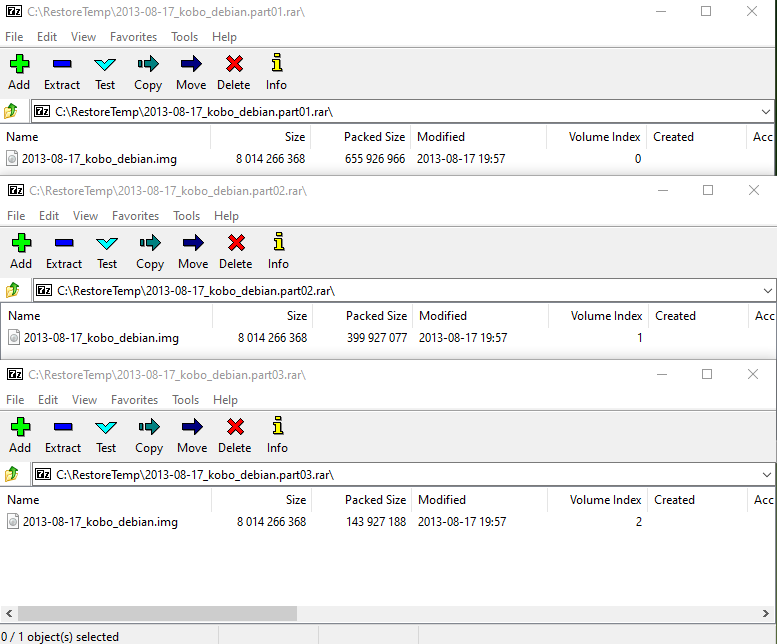 @davidfor I was looking at MarekGibek's Dropbox for Kobo. There were 3 .rar files for Debian. Each had an img file. (part1, part2, part 3) Wondering why there are 3 rars instead of 1.