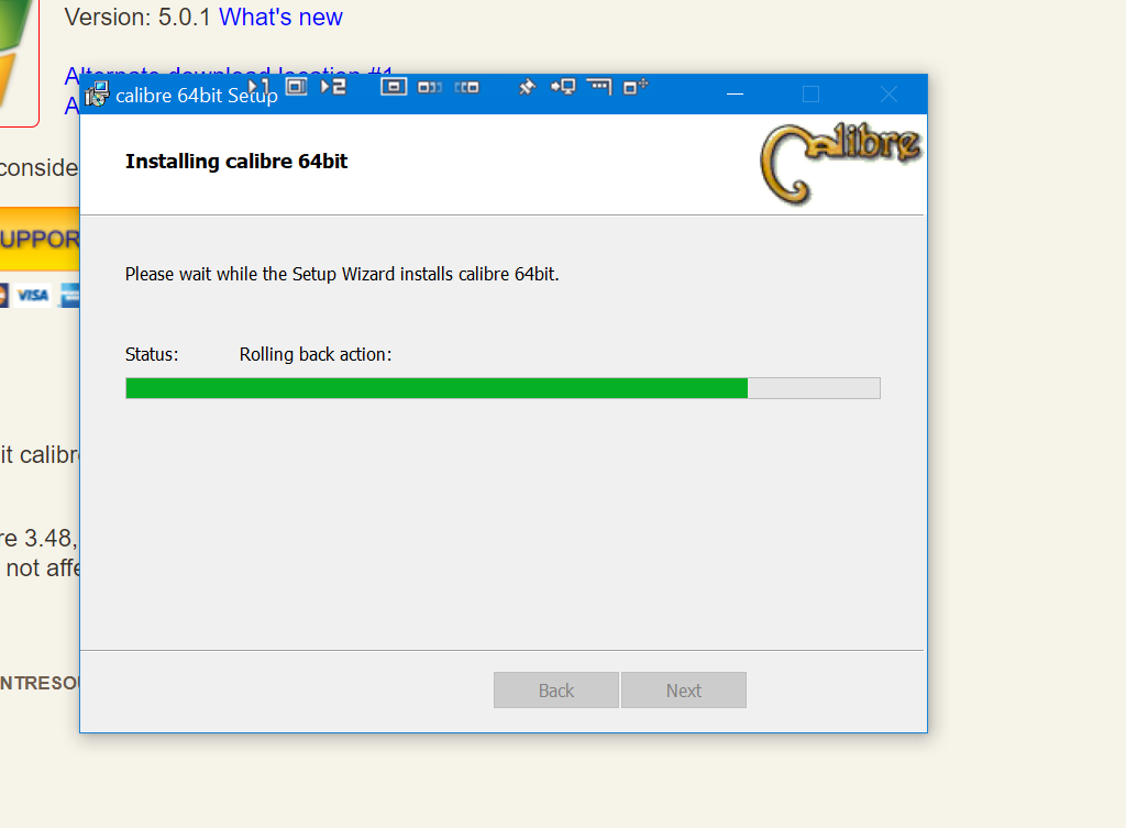 I am not able to install 5.0.1. at this time. I started the first install and after checking the permission box and the install box the process started. Started to copy new files and then stopped, displaying the message on the right. When all is said and done the message on the right pops up. I have deleted the program Calibre, uninstalled C:\\Program Files\\Calibre2\ and attempted to reinstall calibre. I have rebooted after the second attempt to reinstall and I get the same message. I would appreciate any suggestions. Please let me know what information I need to provide to assist in clearing up this matter. Intel(R) Core(TM) i7-1770K CPU @ 3.50GHz 32.0 GB Installed RAM 64-bit operating system, x64-based processor Windows 10 Pro Version 2004 OS Build 19041.058 Windows Feature Experience Pack 120.2212.310 Thank you. |