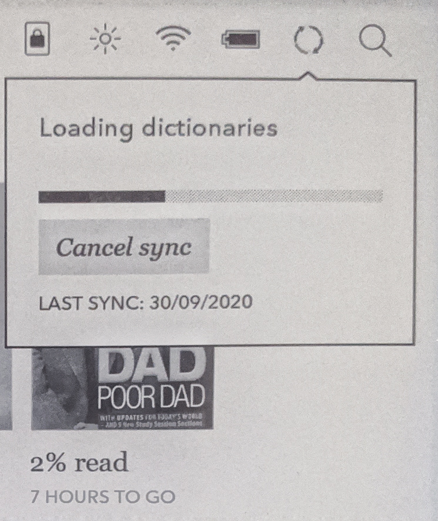 How can we tell? I just did a sync, which only took a few seconds, then checked a couple of words in the book I'm reading now, now indications of a new dictionary that I could see