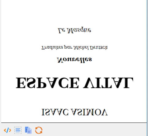 I use Sigil for many years and the last version I use is 0.9.14. I dis not like the new versions after this one, so I stayed on 0.9. But now I wanted to try the last version 1.3 and got a very strange behavior. The text and images on the right pane are shown like in a mirror (inversed), while in the left pane, the text is normal. I edit books in french language. I tried the 1.3 and 1.2 on 2 virtuals machines in Virtualbox, Windows 10 V 2010 and Windows 8.1, all up to date. I join a capture here. |