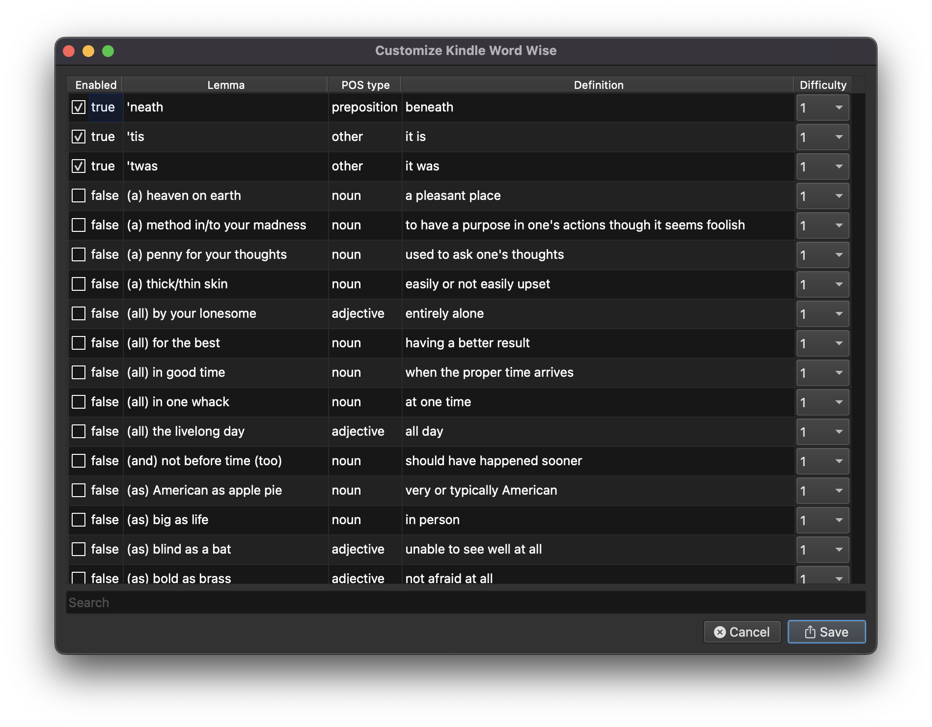 Supported languages: Bokmål, Català, Dansk, Deutsch, English, Español, Français, Hrvatski, Italiano, Lietuvių, Nederlands, Polski, Português, Română, Slovenščina, Suomi, Svenska, Ελληνικά, Македонски, Русский, Українська, 中文, 日本語, 한국어. The latest test plugin will be uploaded to GitHub Actions Artifacts at each git push automatically. User manual and video tutorials: xxyzz.github.io/WordDumb Liberapay donation: Please support open source software on Liberapay: Source code: https://github.com/xxyzz/WordDumb https://github.com/xxyzz/Proficiency Please use GitHub issues to report bugs and welcome pull requests. Change log